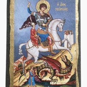 Saint George icon on canvas and beech wood, crafted with traditional technique and timeless aesthetic.